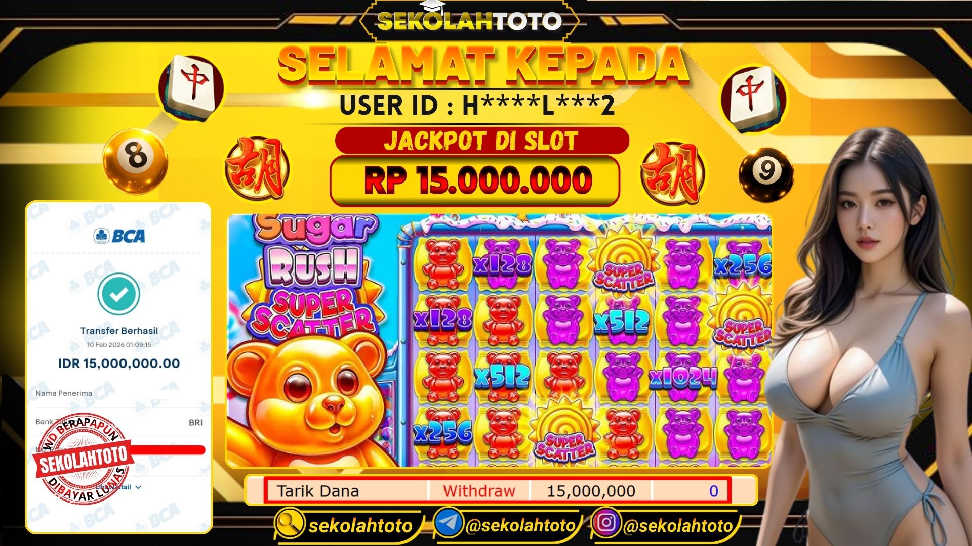 BUKTI PEMBAYARAN JACKPOT PRAGMATIC PLAY 10 Februari 2026 Posted by kepsektoto SUGAR RUSH SUPER SCATTER SELASA, 10 FEBRUARI 2026 RP 15,000,000,- Selamat Kepada Pemenang. Salam JP Updated: 10 Februari 2026 at 01:22 ◀ BUKTI PEMBAYARAN JACKPOT PRAGMATIC PLAY BUKTI PEMBAYARAN JACKPOT PG SOFT ▶