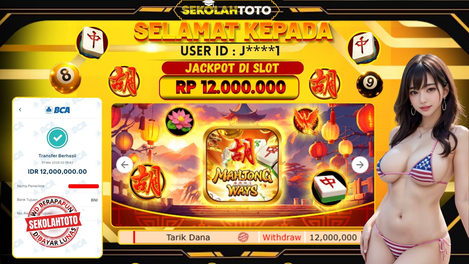 BUKTI PEMBAYARAN JACKPOT PG SOFT 1 Maret 2026 Posted by Admin Sekolahtoto MAHJONG WAYS MINGGU, 01 MARET 2026 RP 12,000,000,- Selamat Kepada Pemenang. Salam JP Updated: 1 Maret 2026 at 05:34 ◀ Prediksi Togel Toto Macau Hari Ini BUKTI PEMBAYARAN JACKPOT PG SOFT ▶
