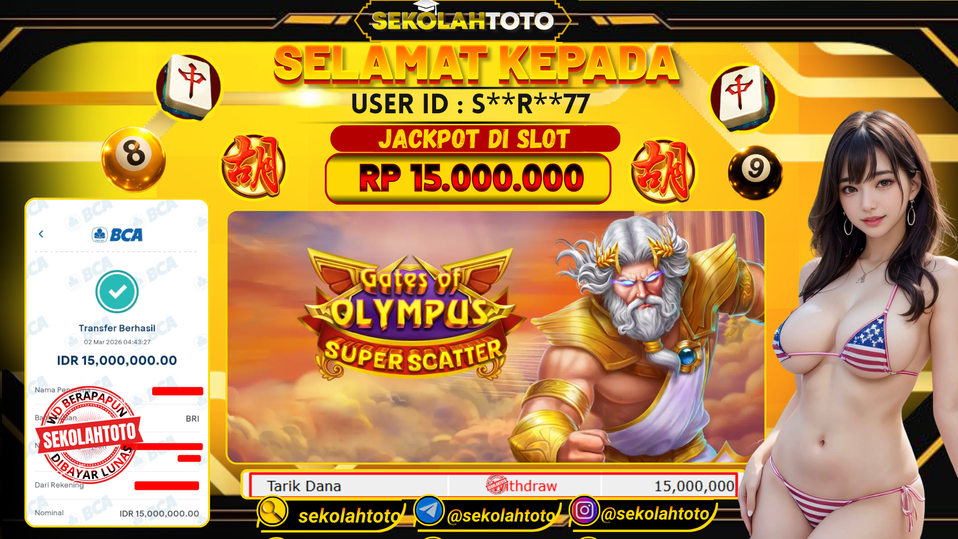 BUKTI PEMBAYARAN JACKPOT PRAGMATIC PLAY 2 Maret 2026 Posted by Admin Sekolahtoto GATES OF OLYMPUS SUPER SCATTER SENIN , 2 MARET 2026 RP 15,000,000,- Selamat Kepada Pemenang. Salam JP Updated: 2 Maret 2026 at 05:16 ◀ BUKTI PEMBAYARAN JACKPOT PRAGMATIC PLAY BUKTI PEMBAYARAN JACKPOT PRAGMATIC PLAY ▶