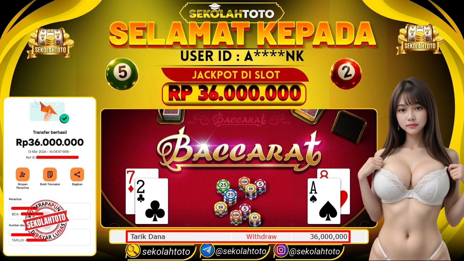 BUKTI PEMBAYARAN JACKPOT LIVE CASINO 13 Maret 2026 Posted by Admin Sekolahtoto BACCARAT 3 GAMES JUMAT, 13 MARET 2026 RP 36,000,000,- Selamat Kepada Pemenang. Salam JP Updated: 13 Maret 2026 at 16:26 ◀ BUKTI PEMBAYARAN JACKPOT TOGEL Prediksi Togel Bullseye Pools Hari Ini ▶